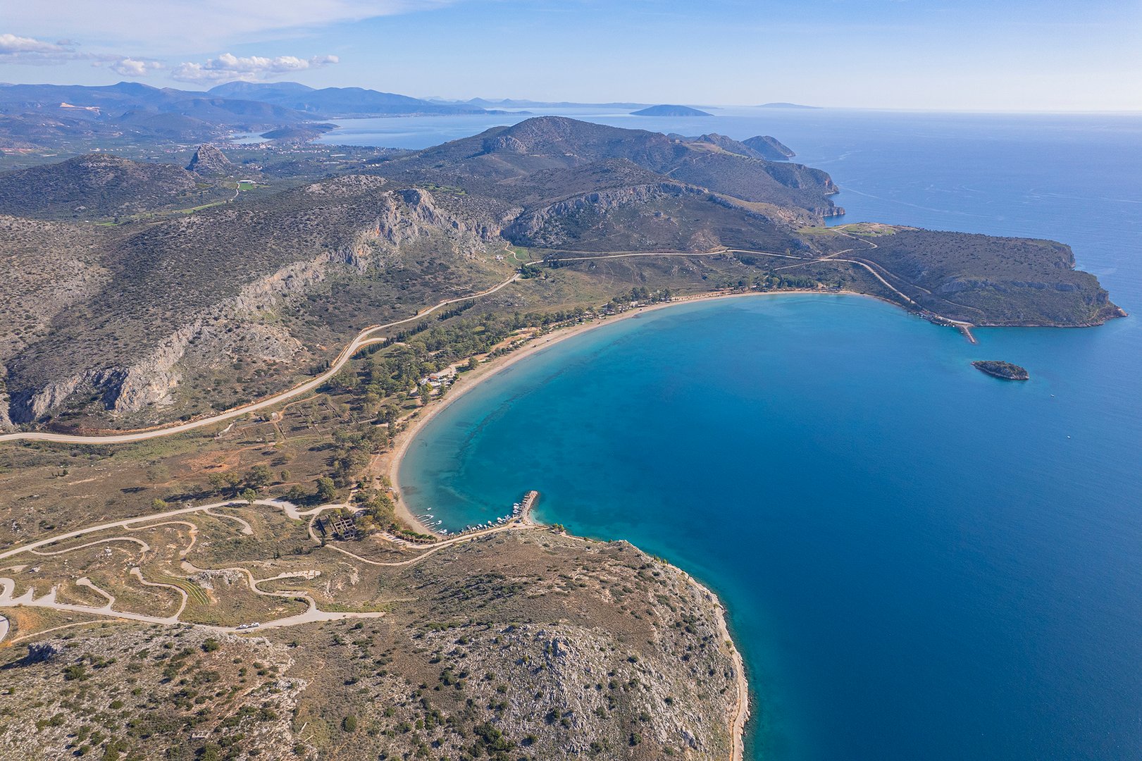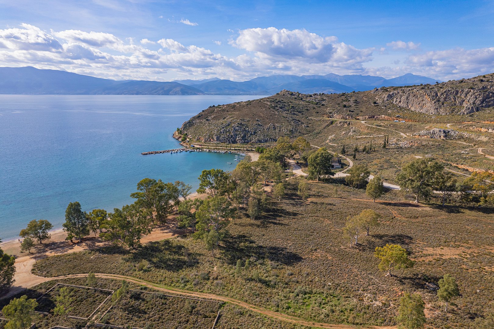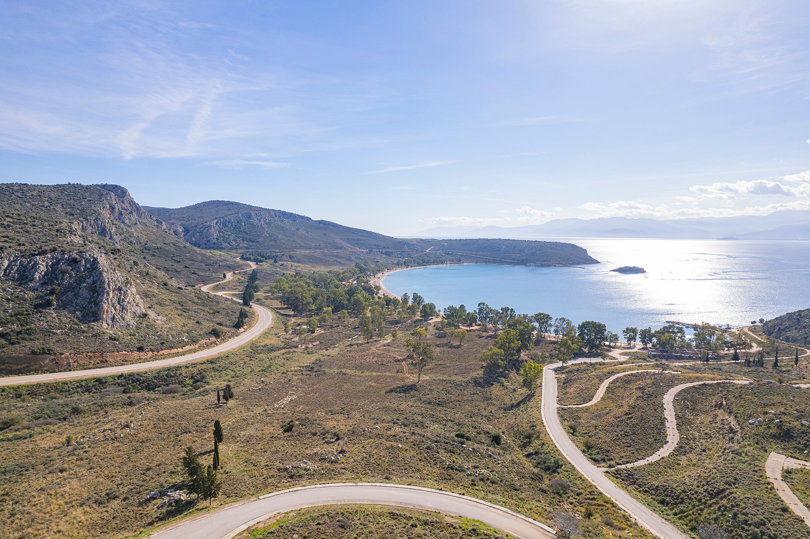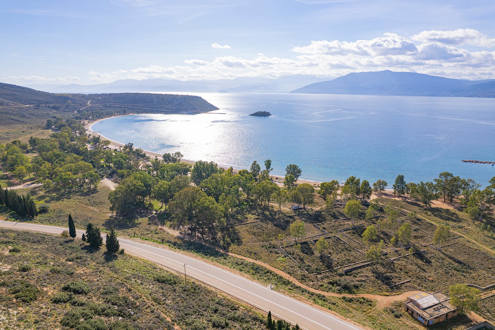 Coastal property of 1,912,000m2 close to Nafplio, one of the most historical and picturesque towns of Greece. The sandy seaside front of 4,200m and its amphitheatrical layout offers a panoramic view to the Argolic Gulf and across to the Astros coast. Combines a location of unique beauty and proximity to Athens and to significant archaeological and cultural spaces. Located 110km from Athens and 30km from the archaeological sites of Mycenae and Epidavros.