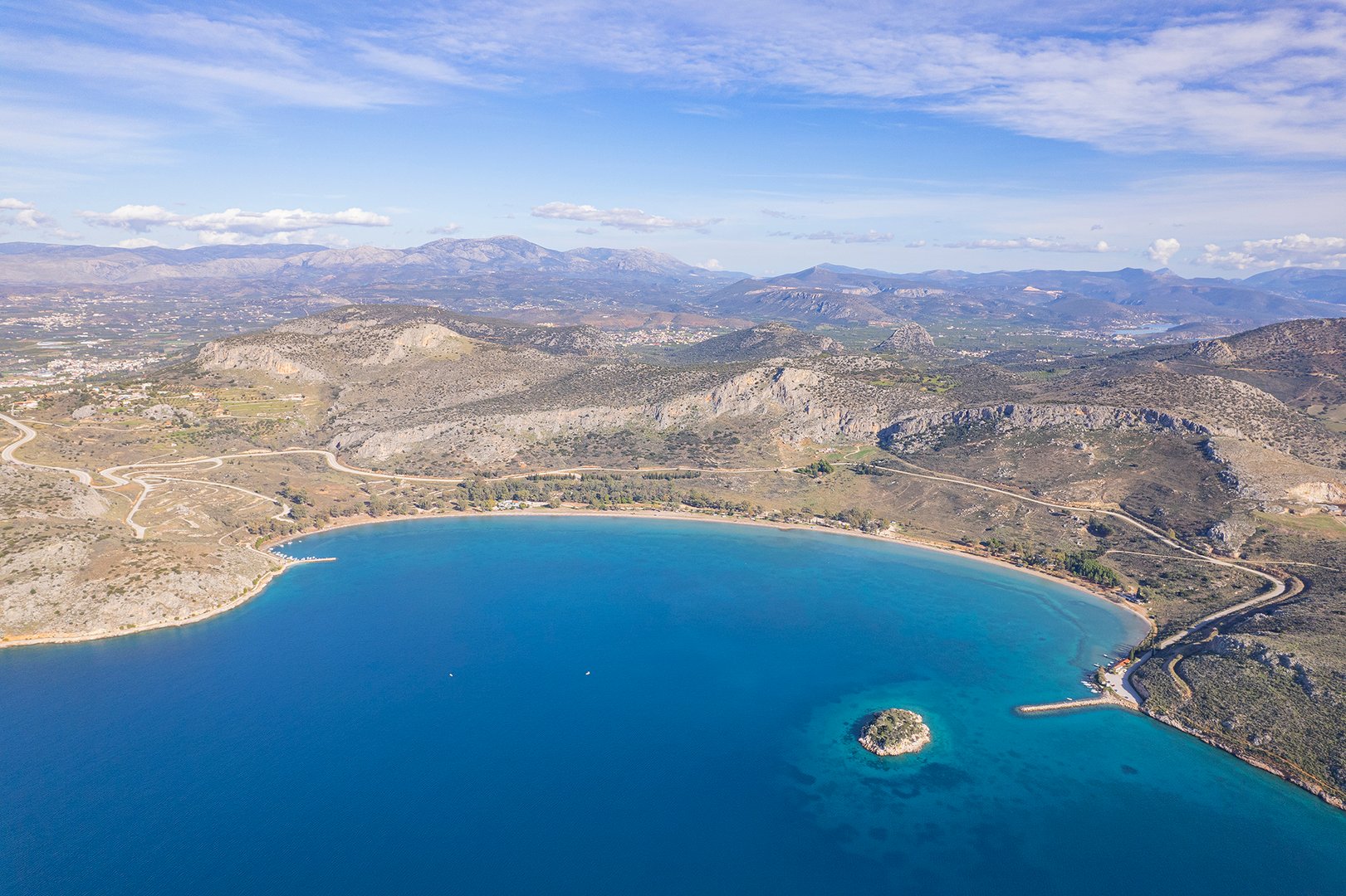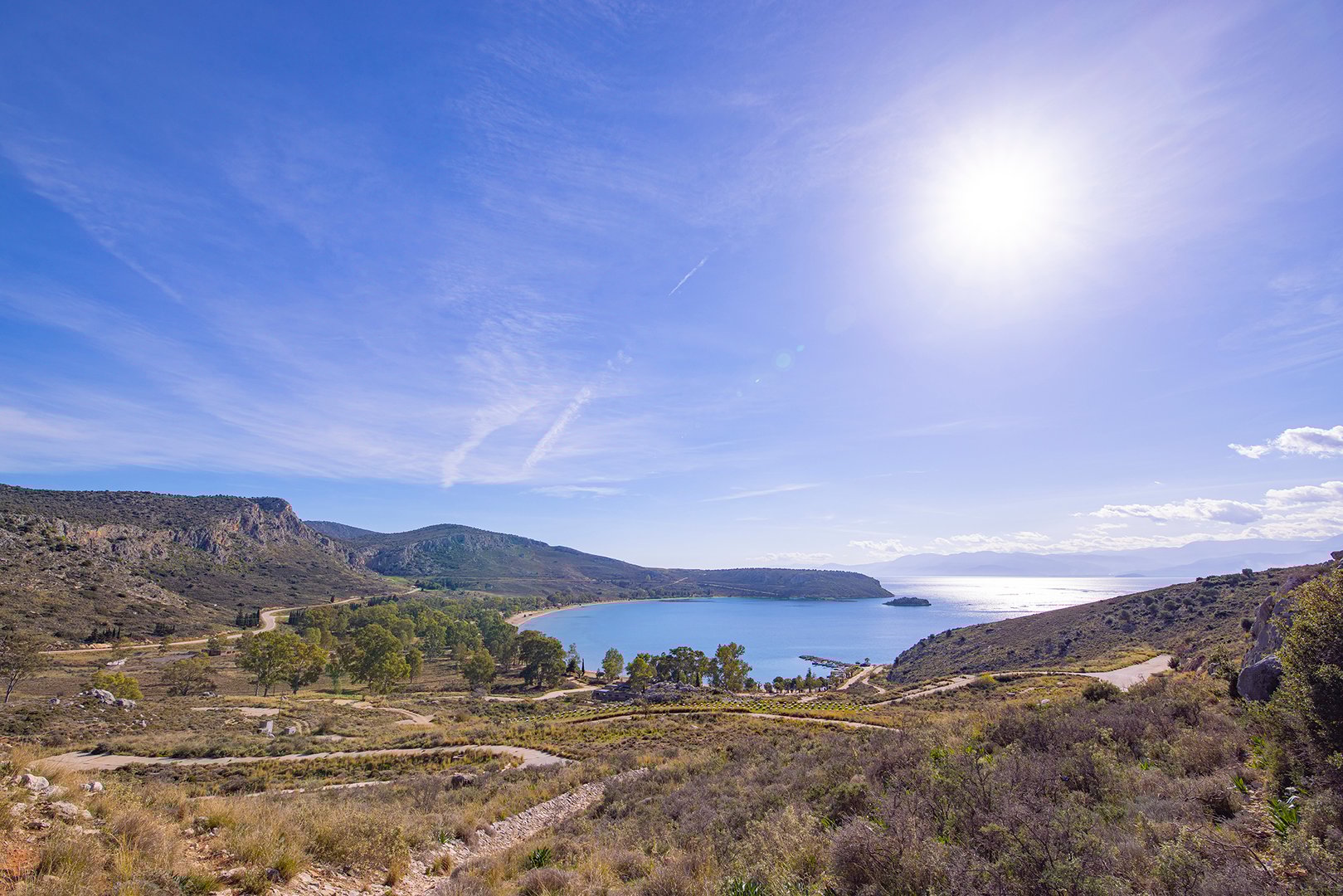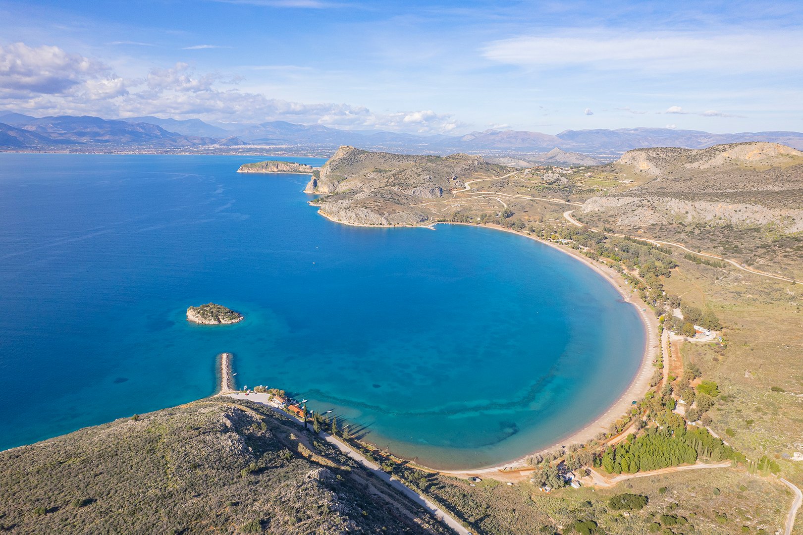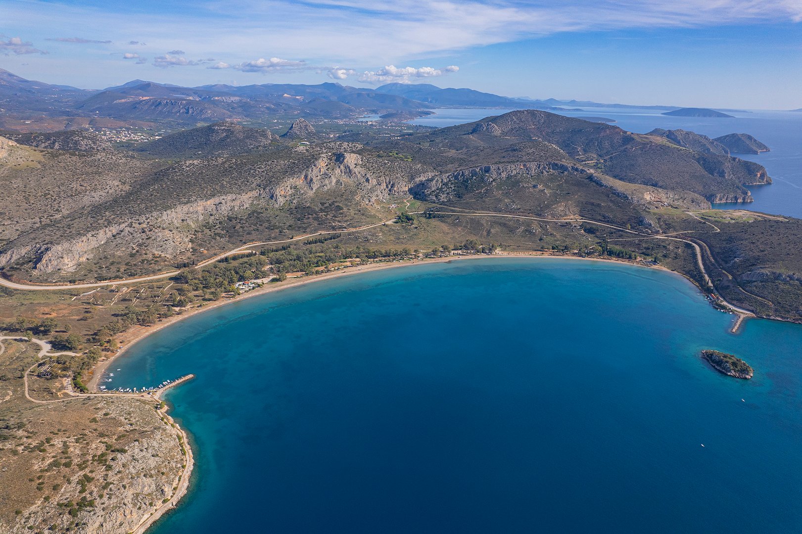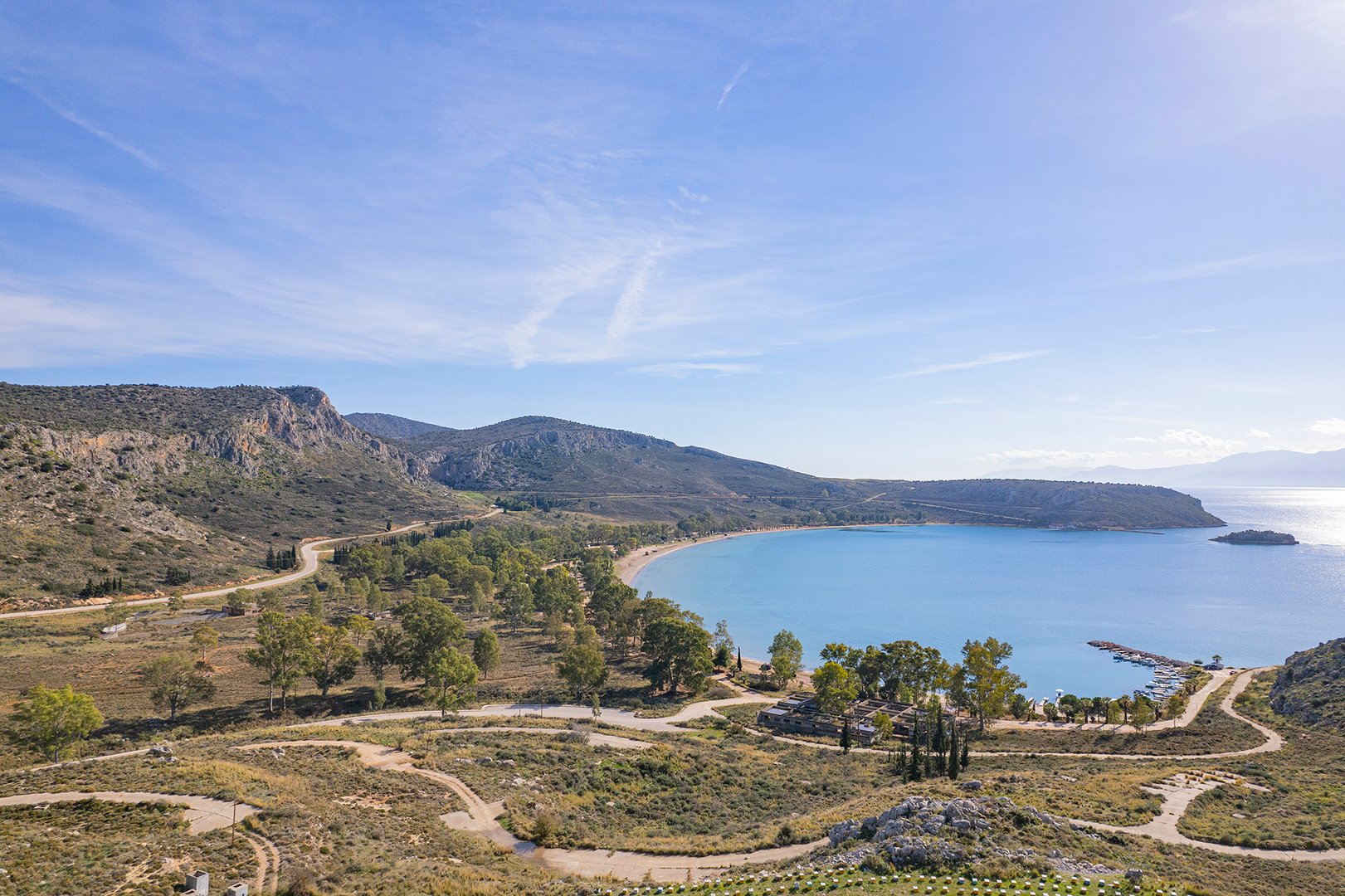Coastal property of 1,912,000m2 close to Nafplio, one of the most historical and picturesque towns of Greece. The sandy seaside front of 4,200m and its amphitheatrical layout offers a panoramic view to the Argolic Gulf and across to the Astros coast. Combines a location of unique beauty and proximity to Athens and to significant archaeological and cultural spaces. Located 110km from Athens and 30km from the archaeological sites of Mycenae and Epidavros.